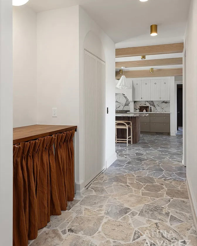 Laundry: Custom pinch pleat cabinet skirt