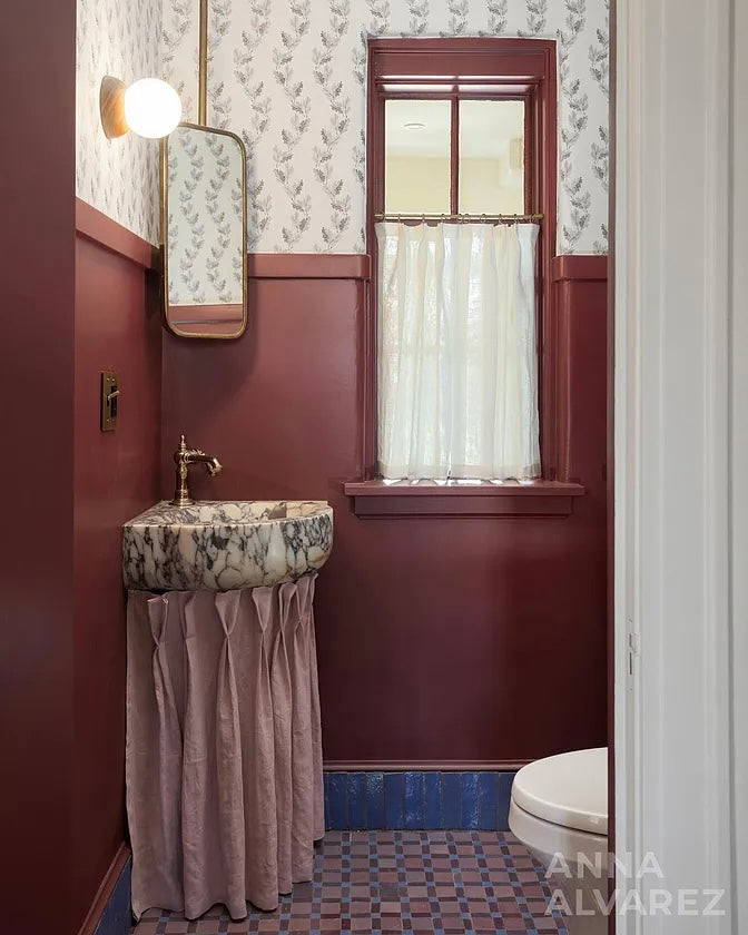 Powder room: Custom pinch pleat sink skirt