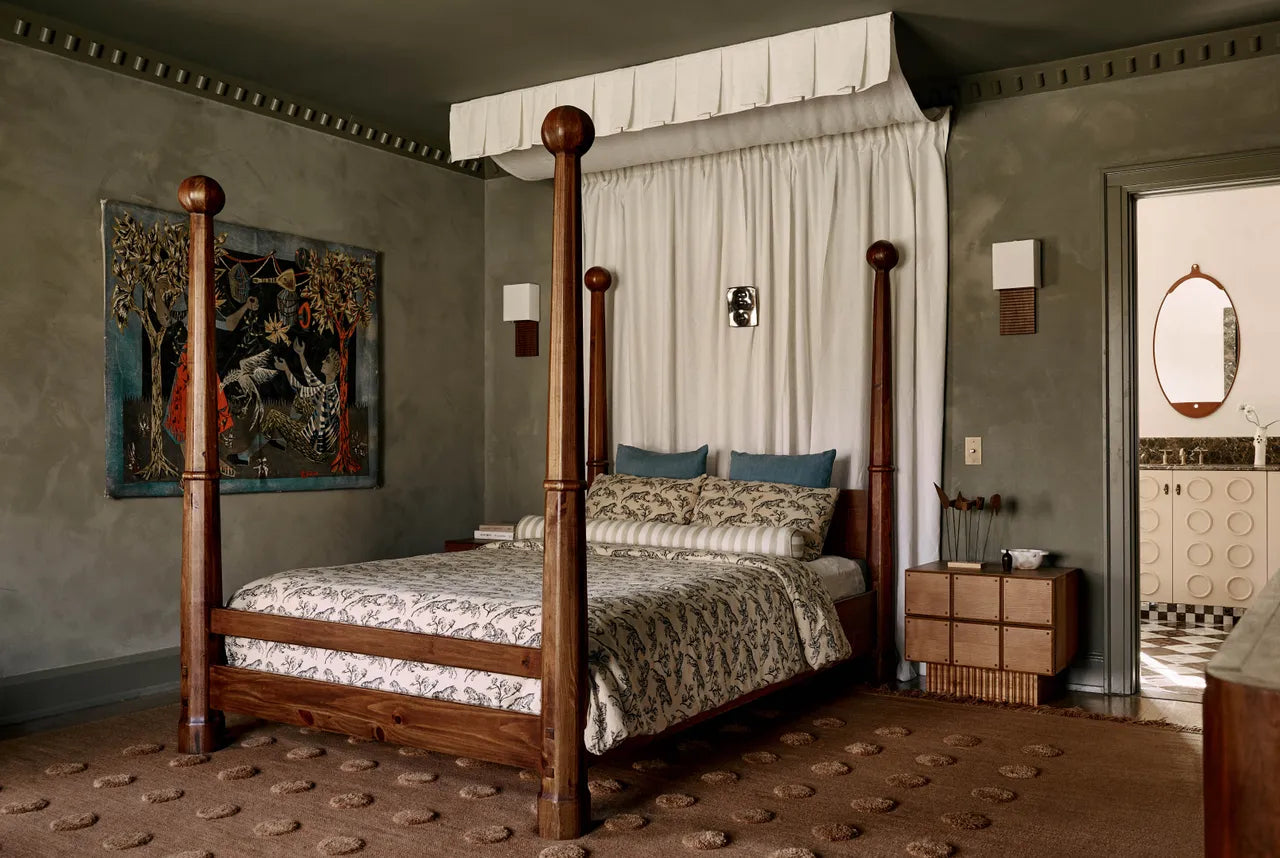 Master bedroom: Custom box pleat canopy